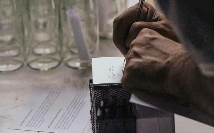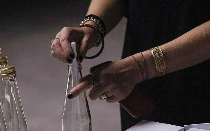 Love Letters was an instructional work repeated three times. It was part of Amin’s installation, 7 and 7.7, co-curated by Paolo De Grandis and Claudio Crescentini, which travelled from Wei-Ling Contemporary in Kuala Lumpur to the Amin Gulgee Gallery in Karachi and then on to Galleria d’Arte Moderna (GAM) and Mattatoio, both in Rome. For this interactive performance, the artist provided empty bottles and a postcard-size note that read: “Kindly write a declaration of love to a person, place or thing (past, present or future) on a piece of paper, roll it up and place it in one of the bottles. Take your bottle inside the gallery and place it against any one of its walls. These messages, which are to remain strictly private, will be destroyed at the end of the show.” Amin had deconstructed a line from the Quran that has particular resonance for him for the itinerant show. He has used the words repeatedly in his sculpture. At first, they were readable, but over time they have been dissected to the point of illegibility. Here the verse was broken into seven fragments—hence the title 7. Through this process of repetition and deconstruction, Amin has not only internalized the words’ message, but reinforced the privacy of his attachment to it. These works became his private love letters. By asking viewers to write their own epistles and place them around his installation, he wished to confirm his belief in the privacy of love. Amin also wanted to draw attention to the specter of surveillance that prevails in our electronic age. At GAM, Claudio greeted the exhibition’s arrival with a curatorial intervention: Roman poets took turns reciting declarations of love into a microphone. Amin cannot understand Italian. Their intent, however, was not lost on him, or anyone else in attendance.
